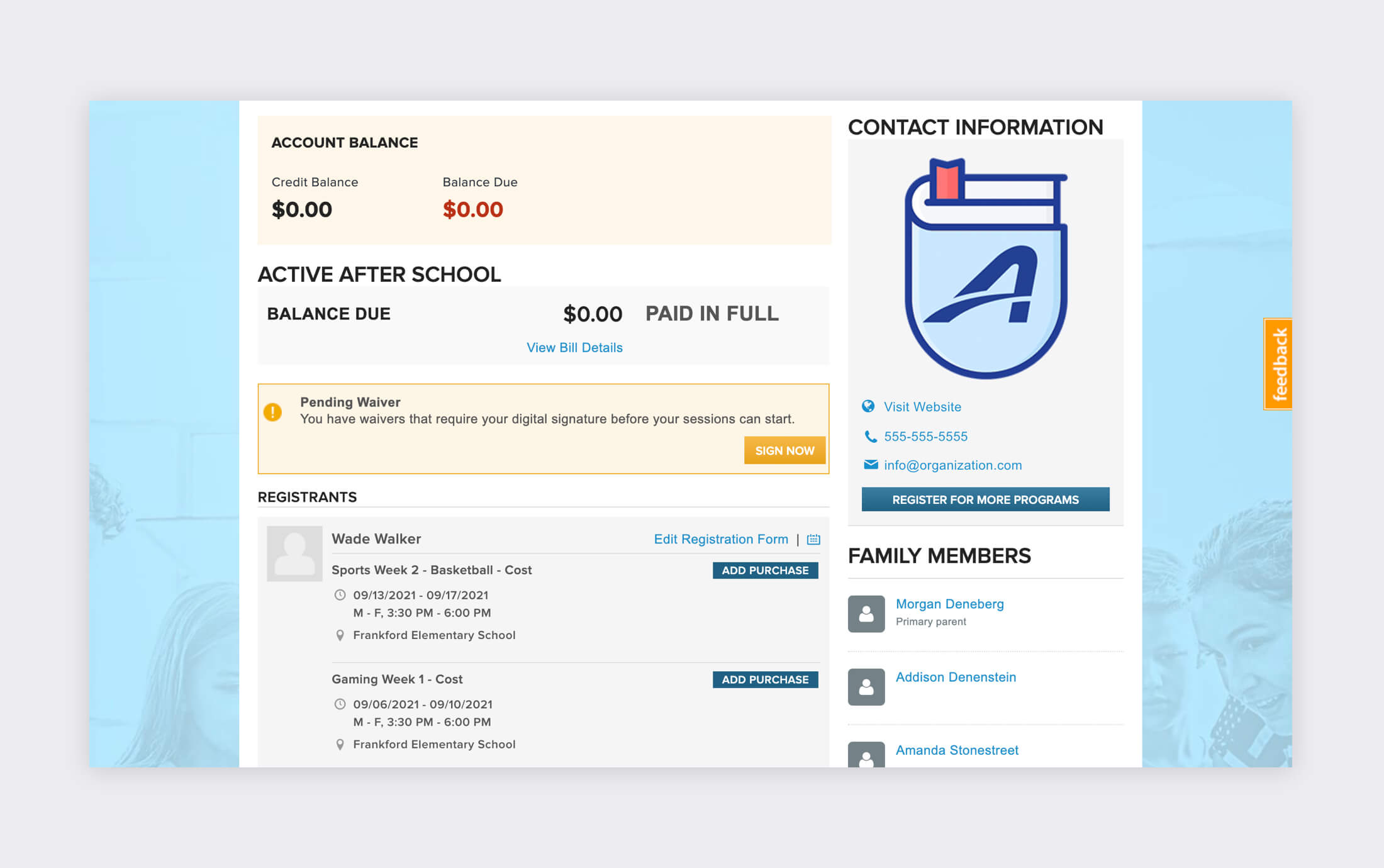 Free up your staff while offering self-service to participants and families with convenient online account management.