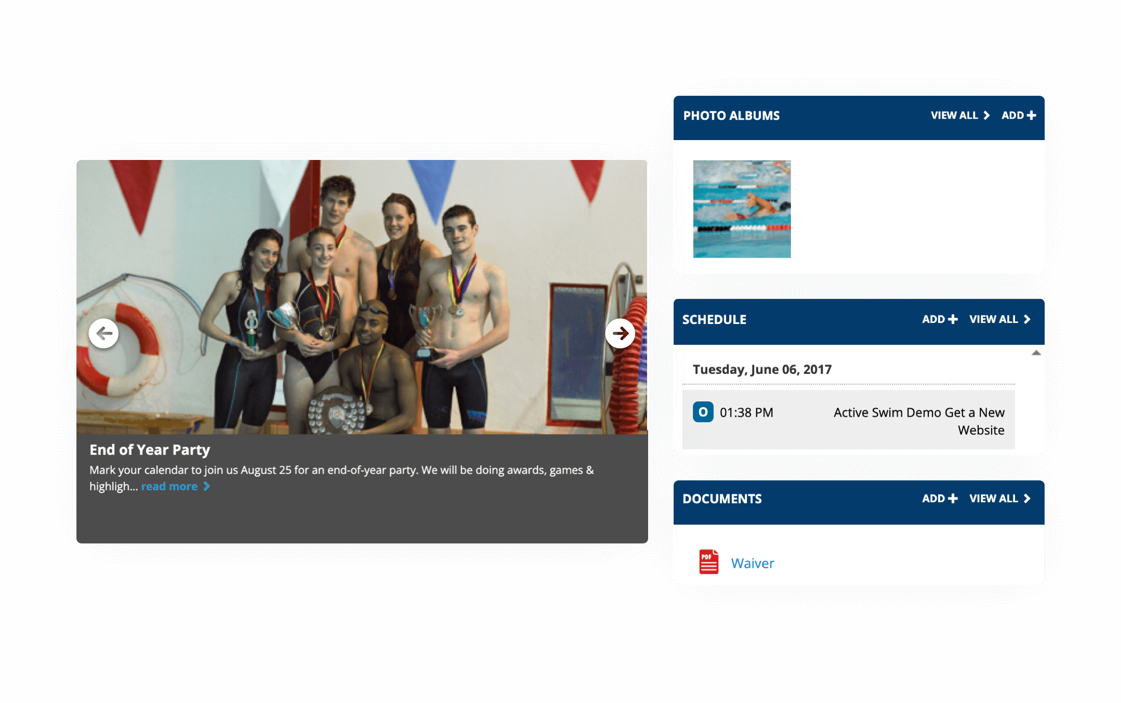 ACTIVEWorks Swim has everything you need to effectively run your swim programs and meets smoothly, freeing up time for you and your staff to focus on delivering the best experience possible.