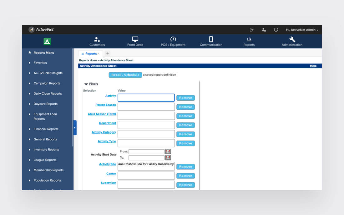 Customize reporting for your specific needs in the ACTIVENet Insights business intelligence tool.