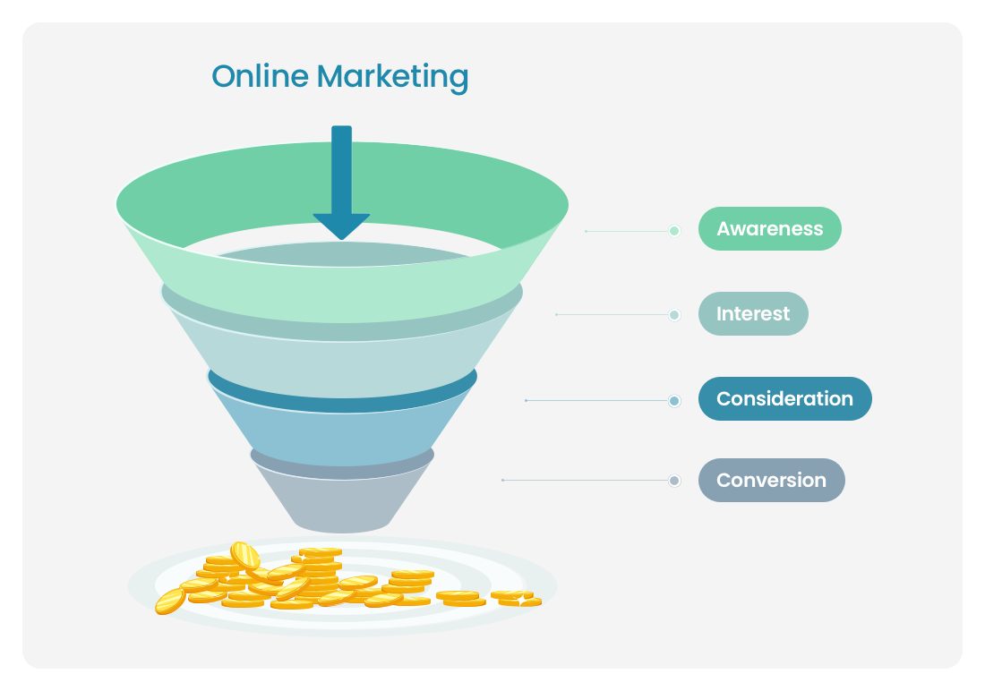 Awareness is often referred to as top of funnel, as it is the first touchpoint between your organization and your potential customers. By casting a wide net, you are able to touch as many people as possible and hopefully capture their attention so that they may continue to the next stage of the marketing funnel.