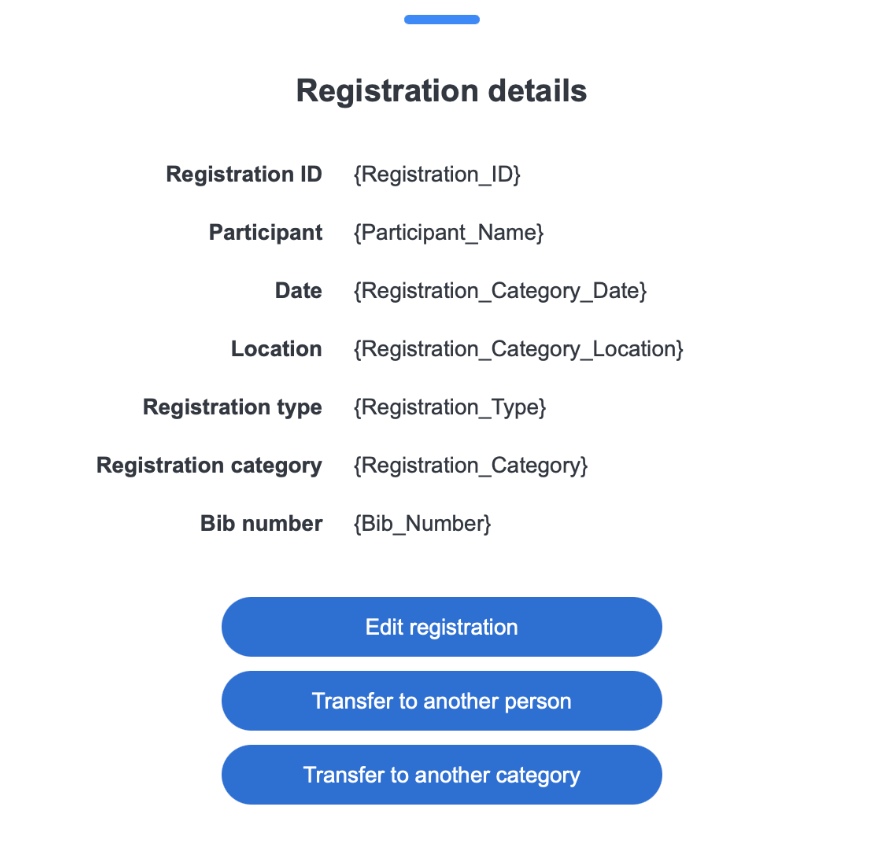 The Registration Details component has been enhanced with a new level of convenience—direct button links to self-edit options! With the click of a button, participants will be able to quickly and easily transfer categories or manage their registration right from your confirmation emails. Make event navigation easier than ever!